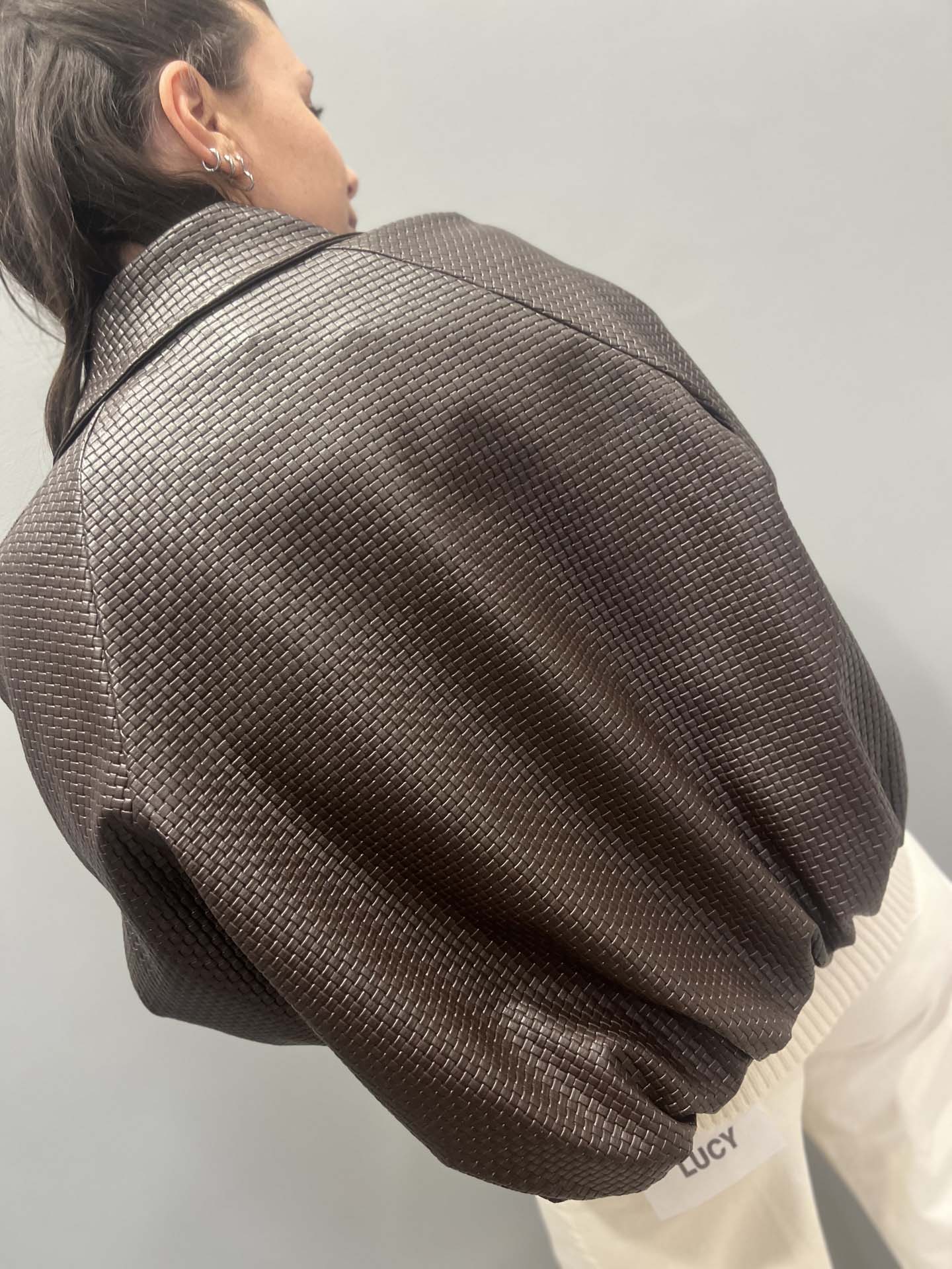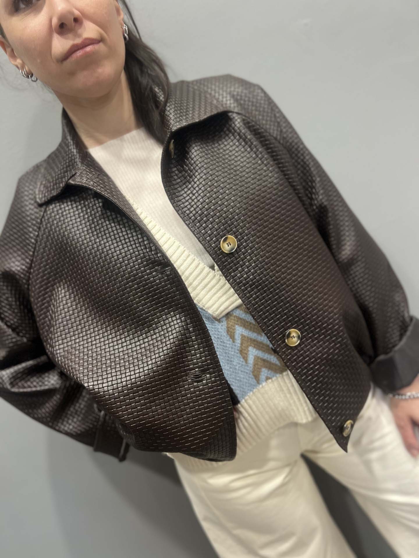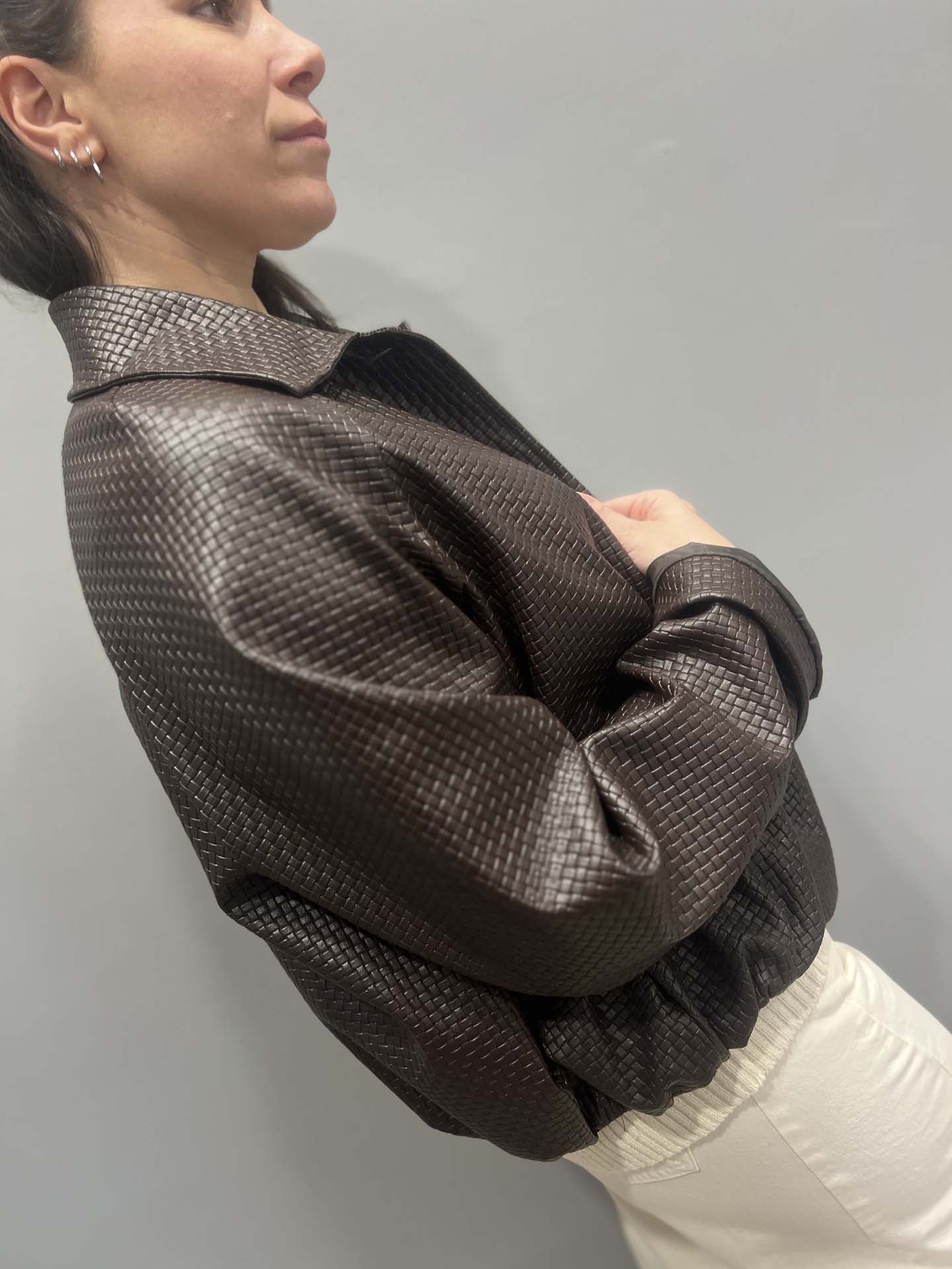 BOMBER INTRECCIATO MARRONE ECOPELLE