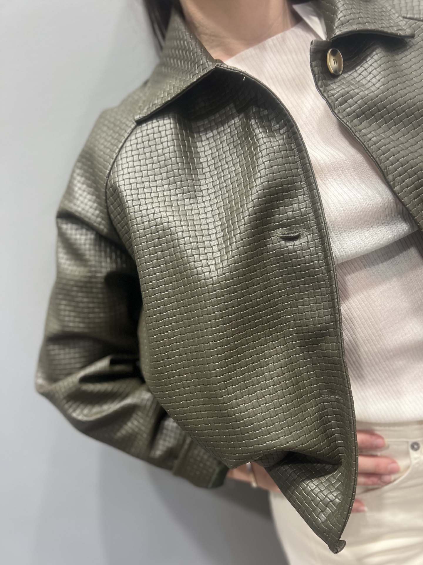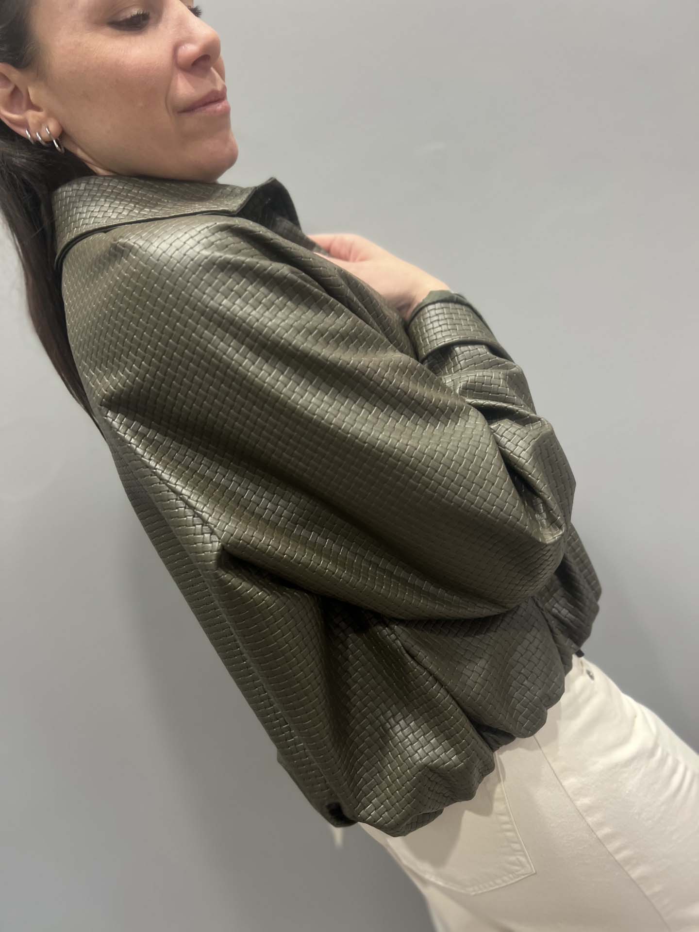 BOMBER INTRECCIATO VERDE MILITARY ECOPELLE