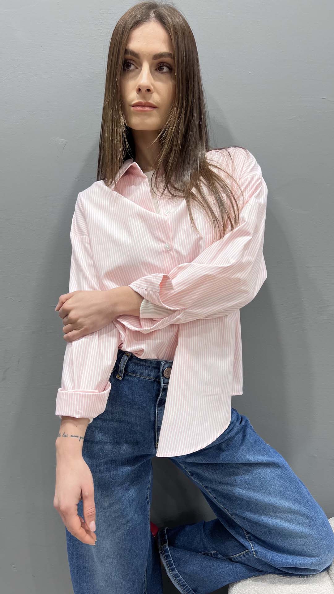 Camicia bastoncino rosa e bianca