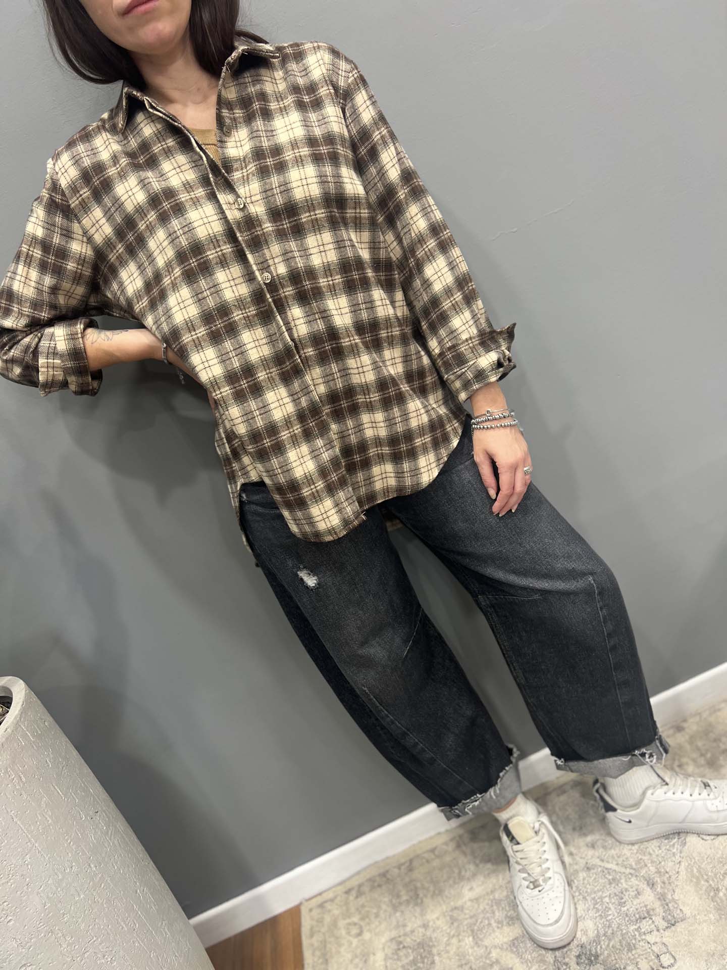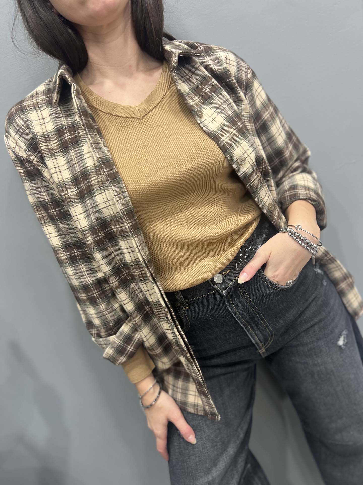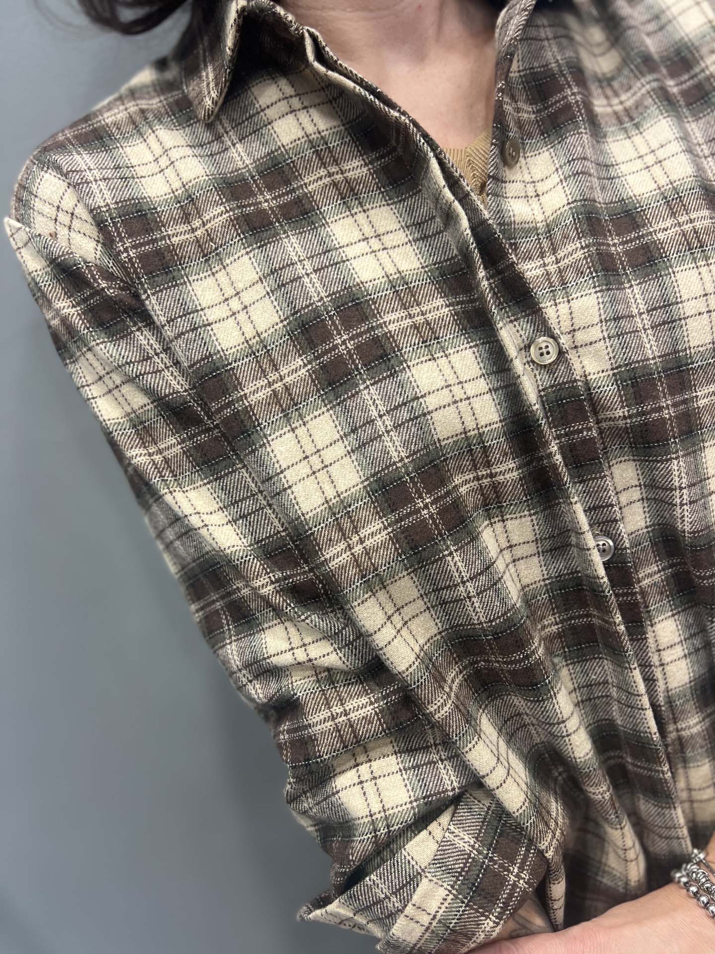 camicia check quadri colore marrone beige verde tessuto felpatino
