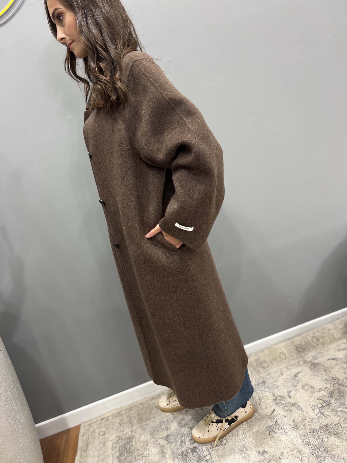 cappotto loden marrone handmade cachemire e lana con colletto