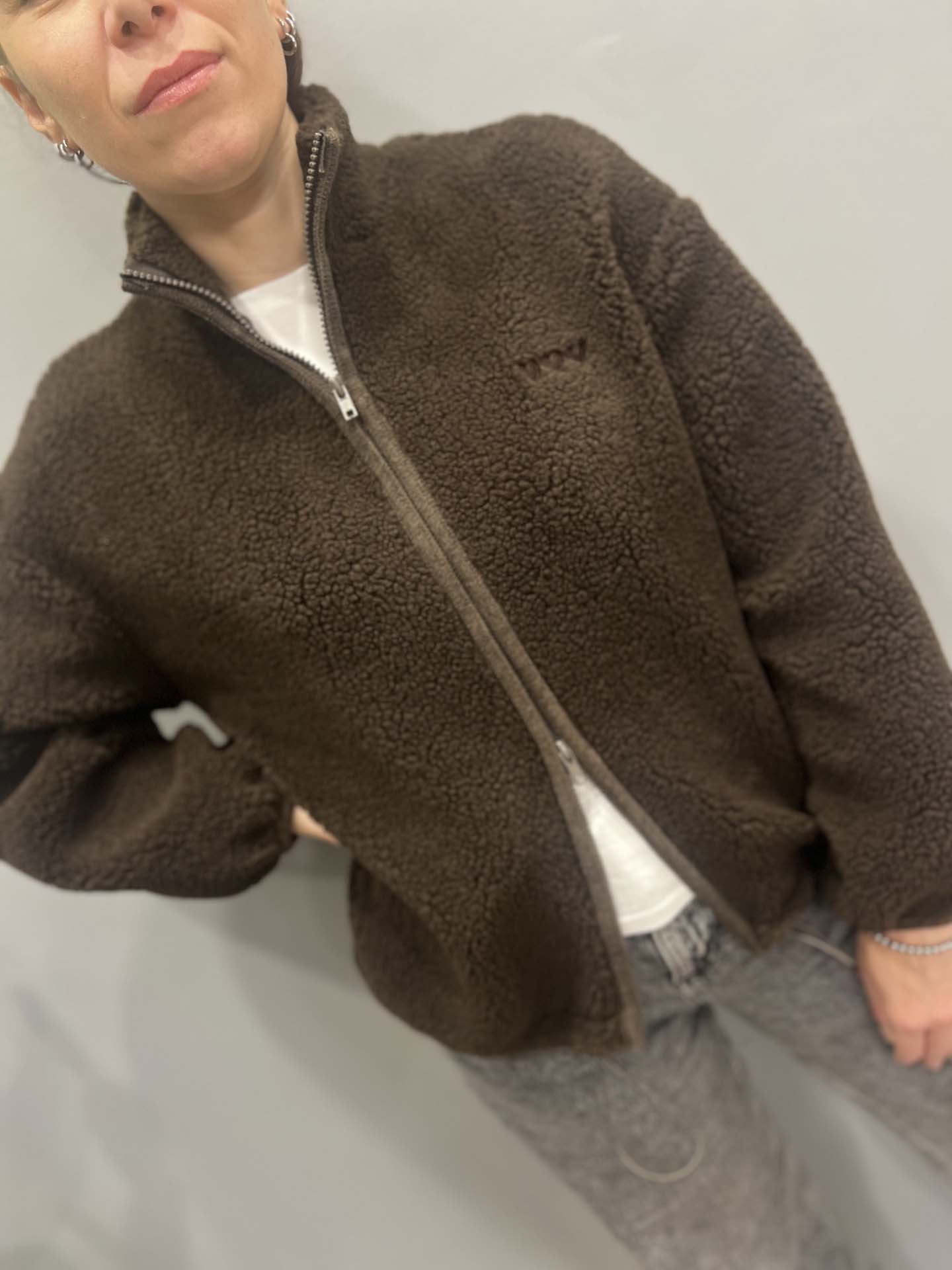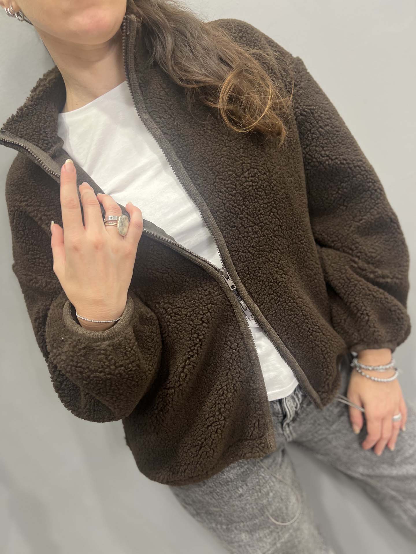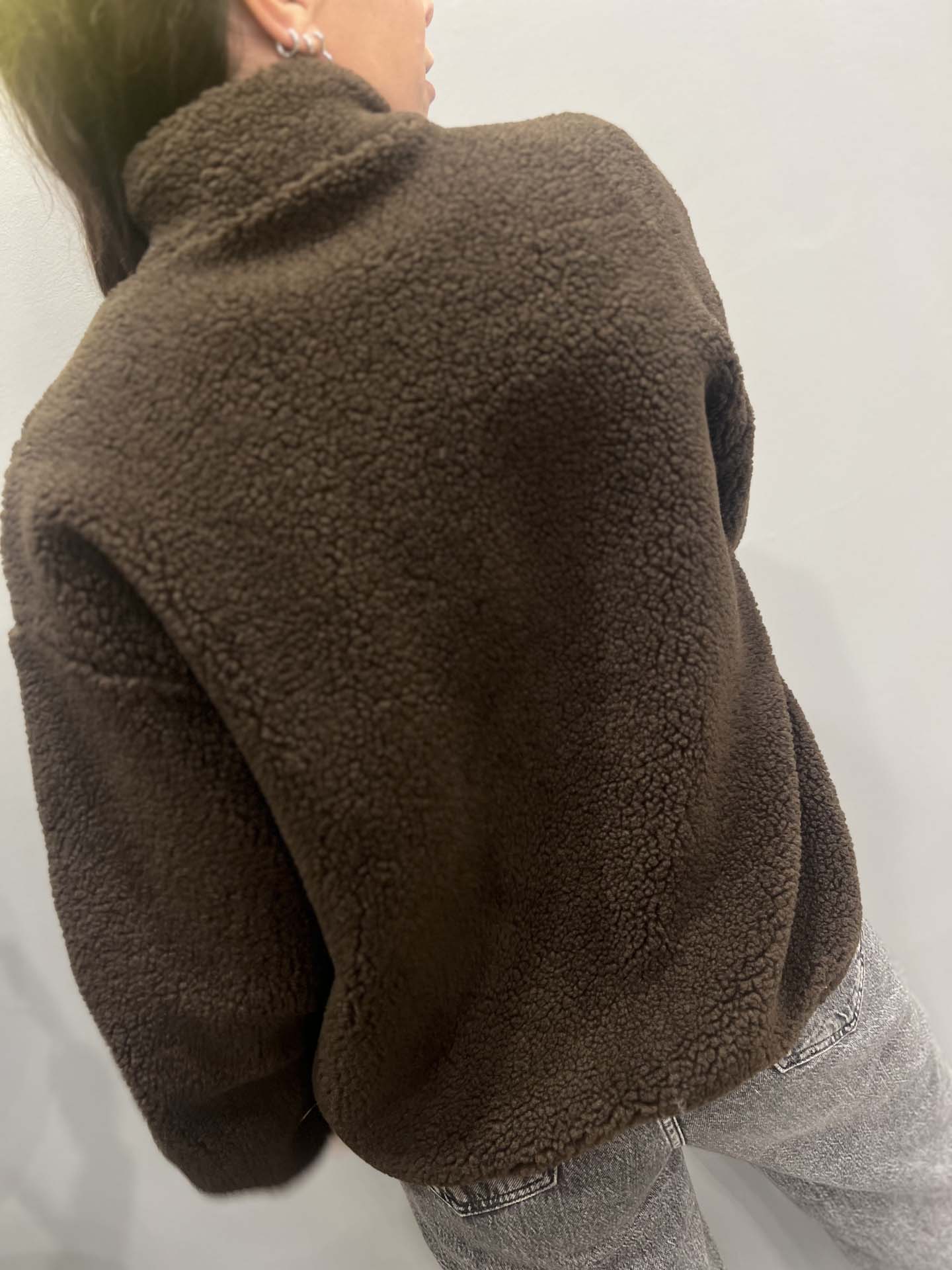 FELPA TEDDY CON CERNIERA E COULISSE MARRONE MORO
