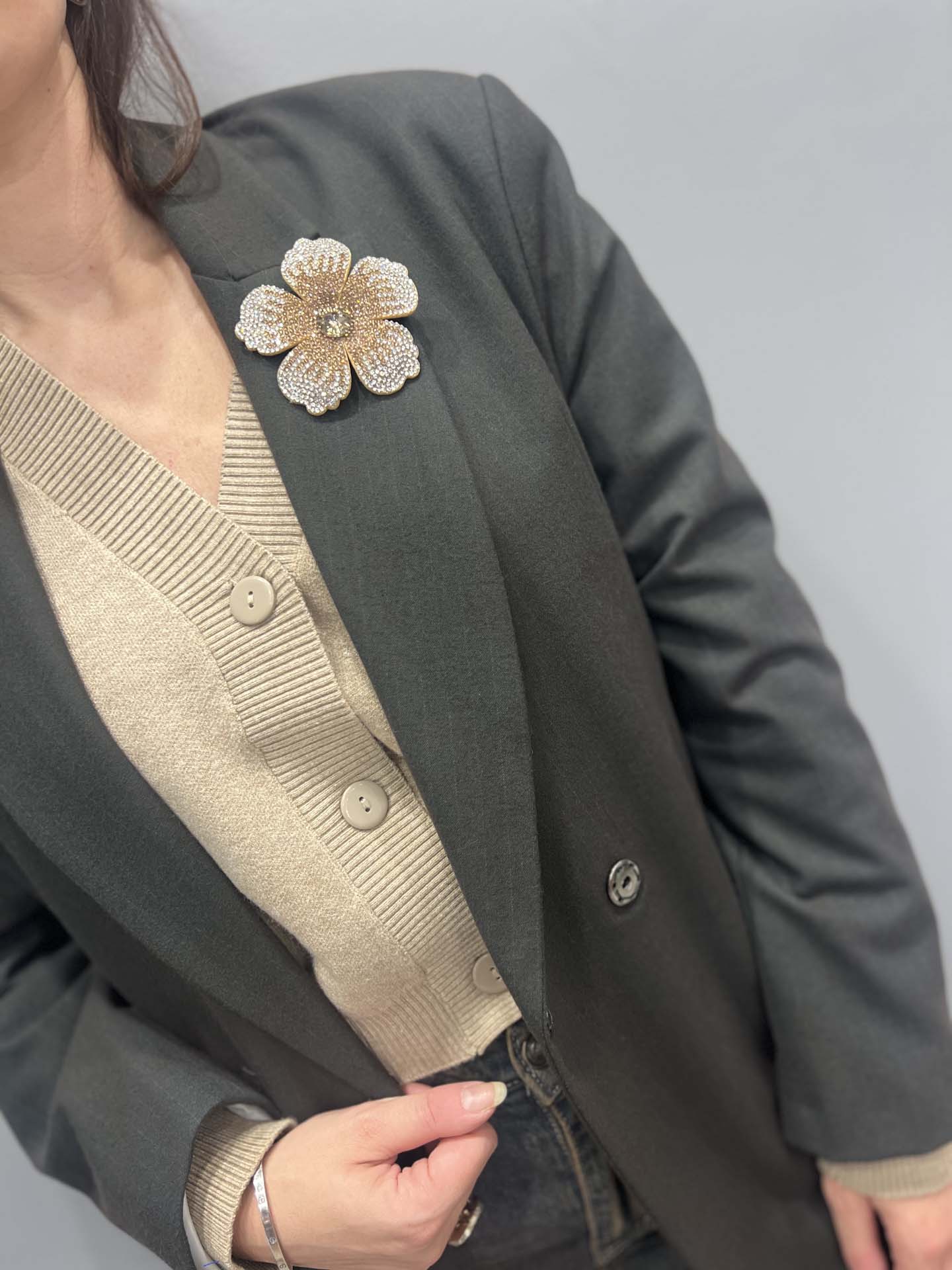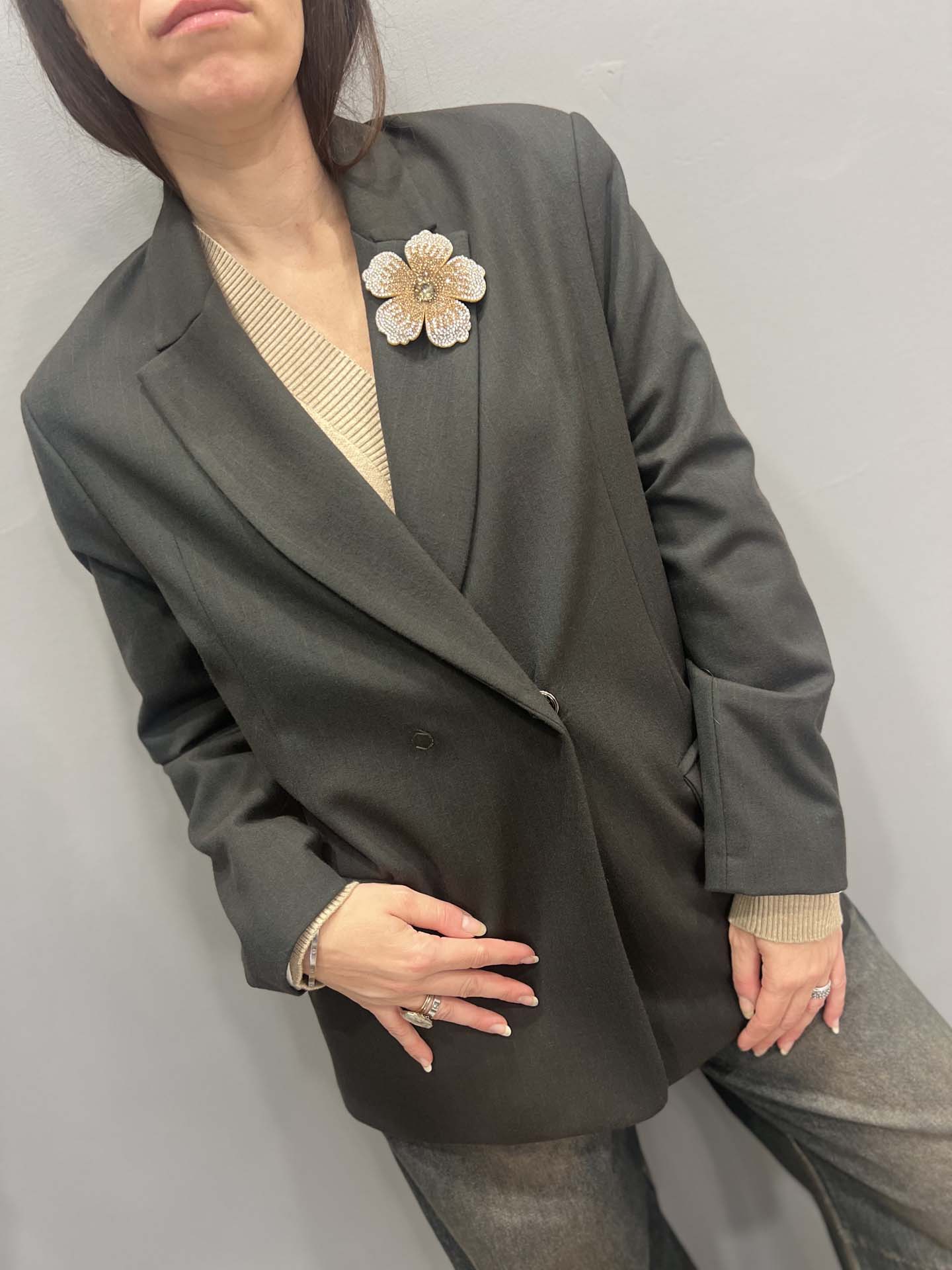 giacca gessata spilla verde military