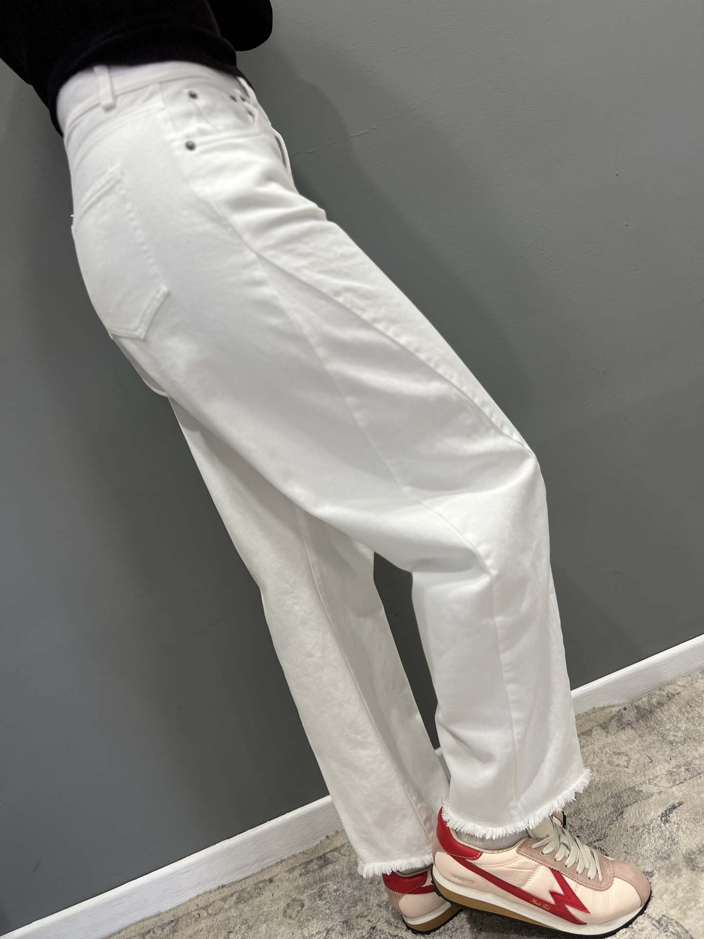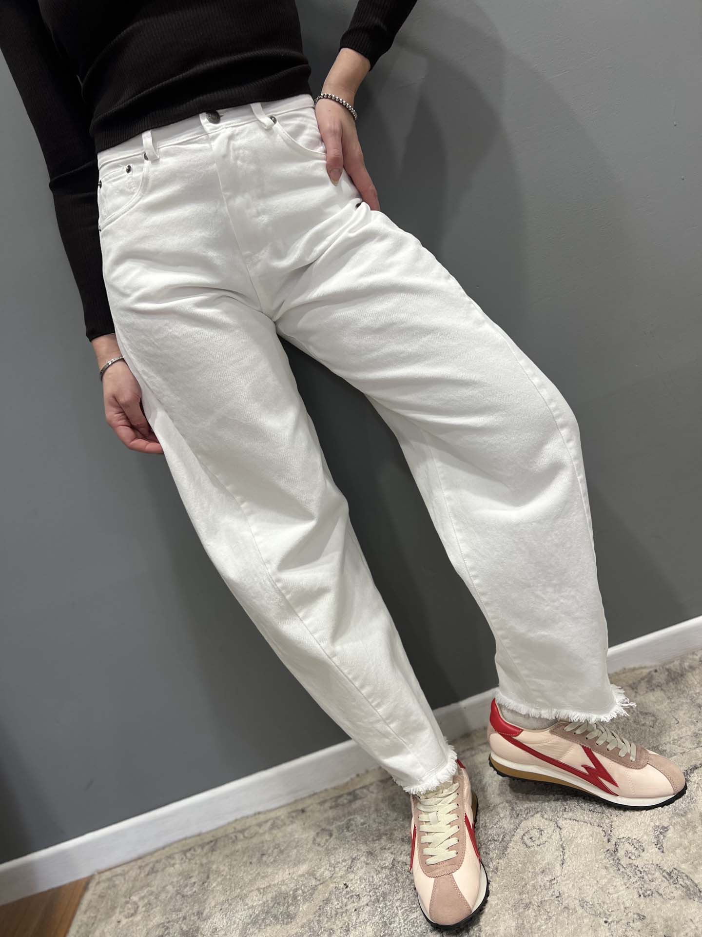 jeans baloon bianco orlo sfrangiato