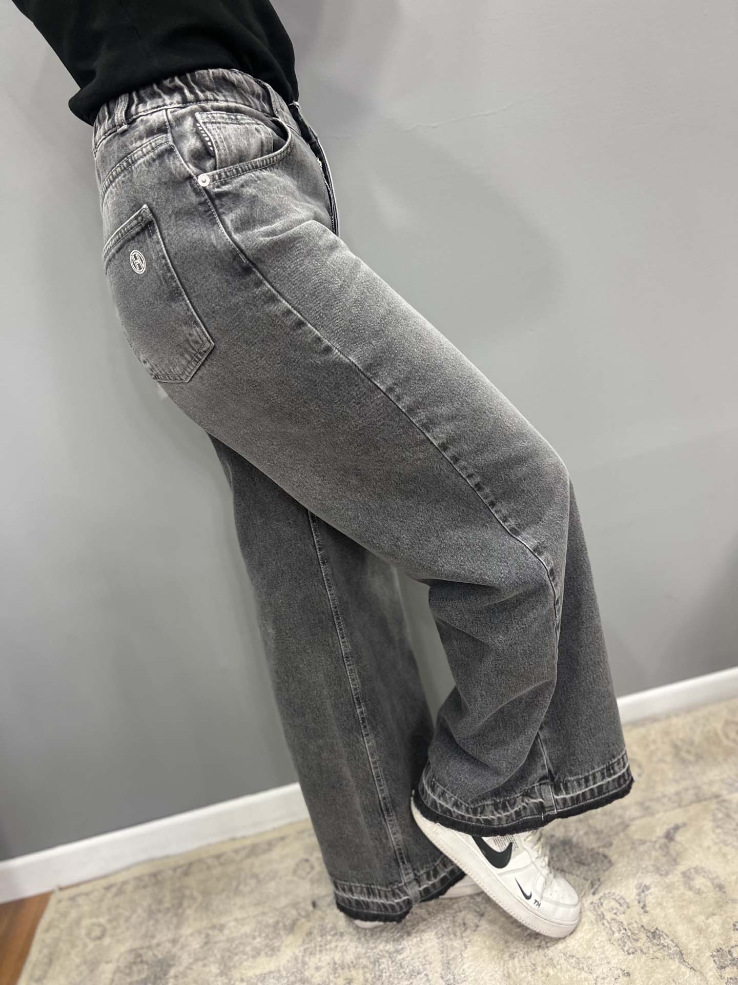 Jeans orissa grigio delave con orlo sfrangiato ed elastico in vita