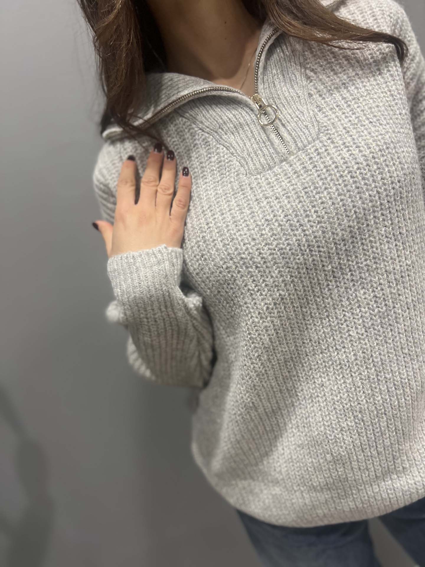 Maglia grigia collo cerniera lupetto filo oro lurex