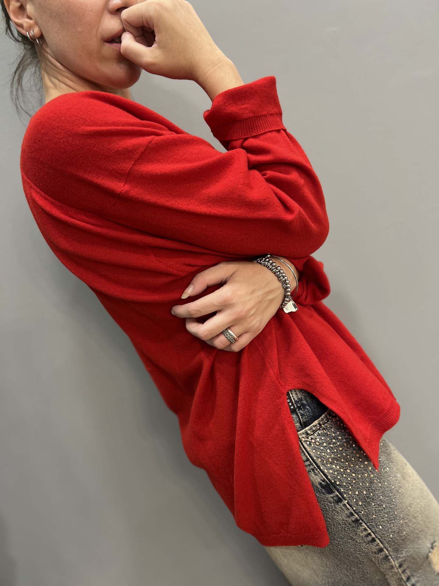 Maglia lana scollo v rossa modello scatoletta