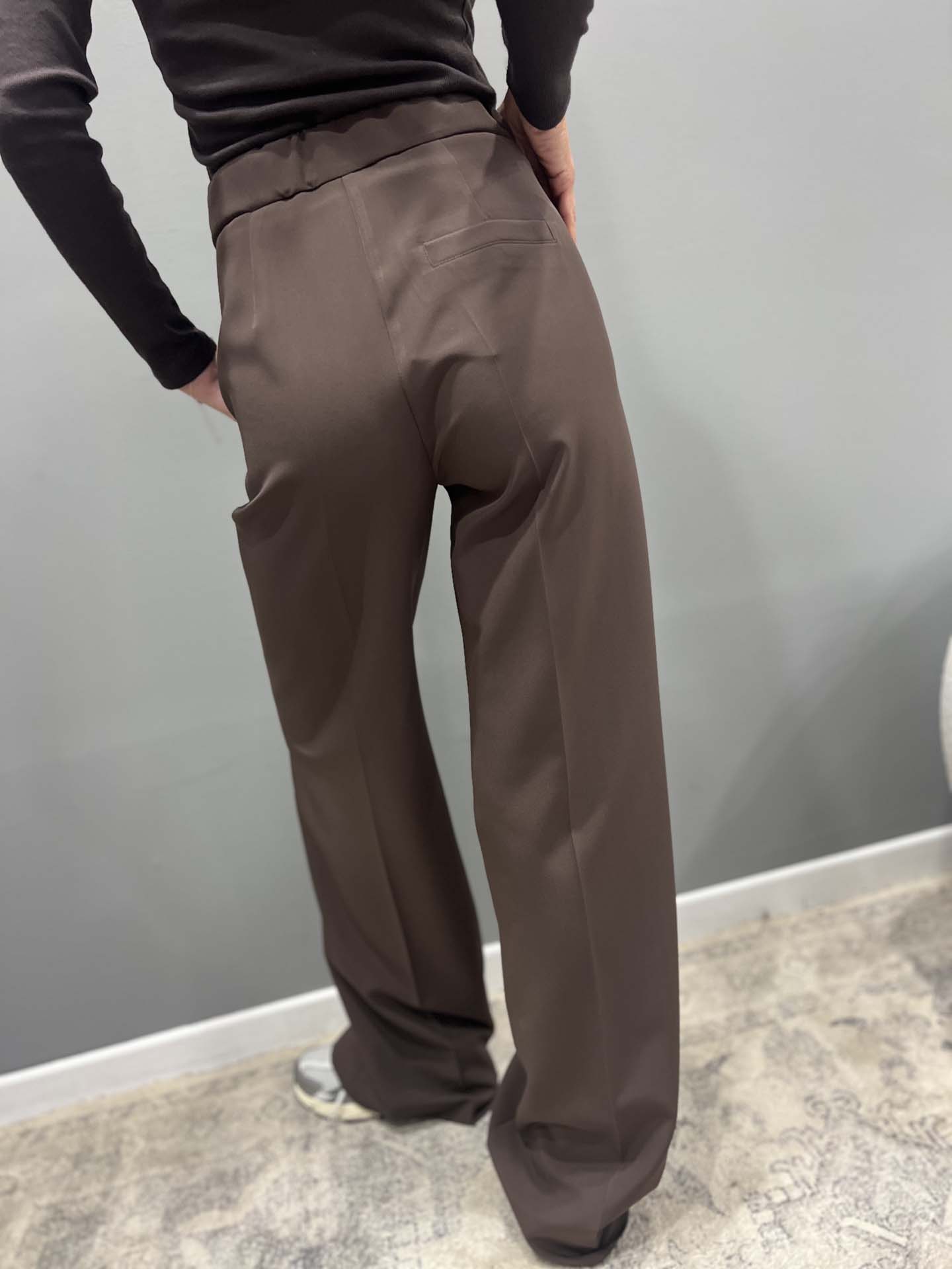 Pantalone palazzo marrone cacao con elastico dietro in vita