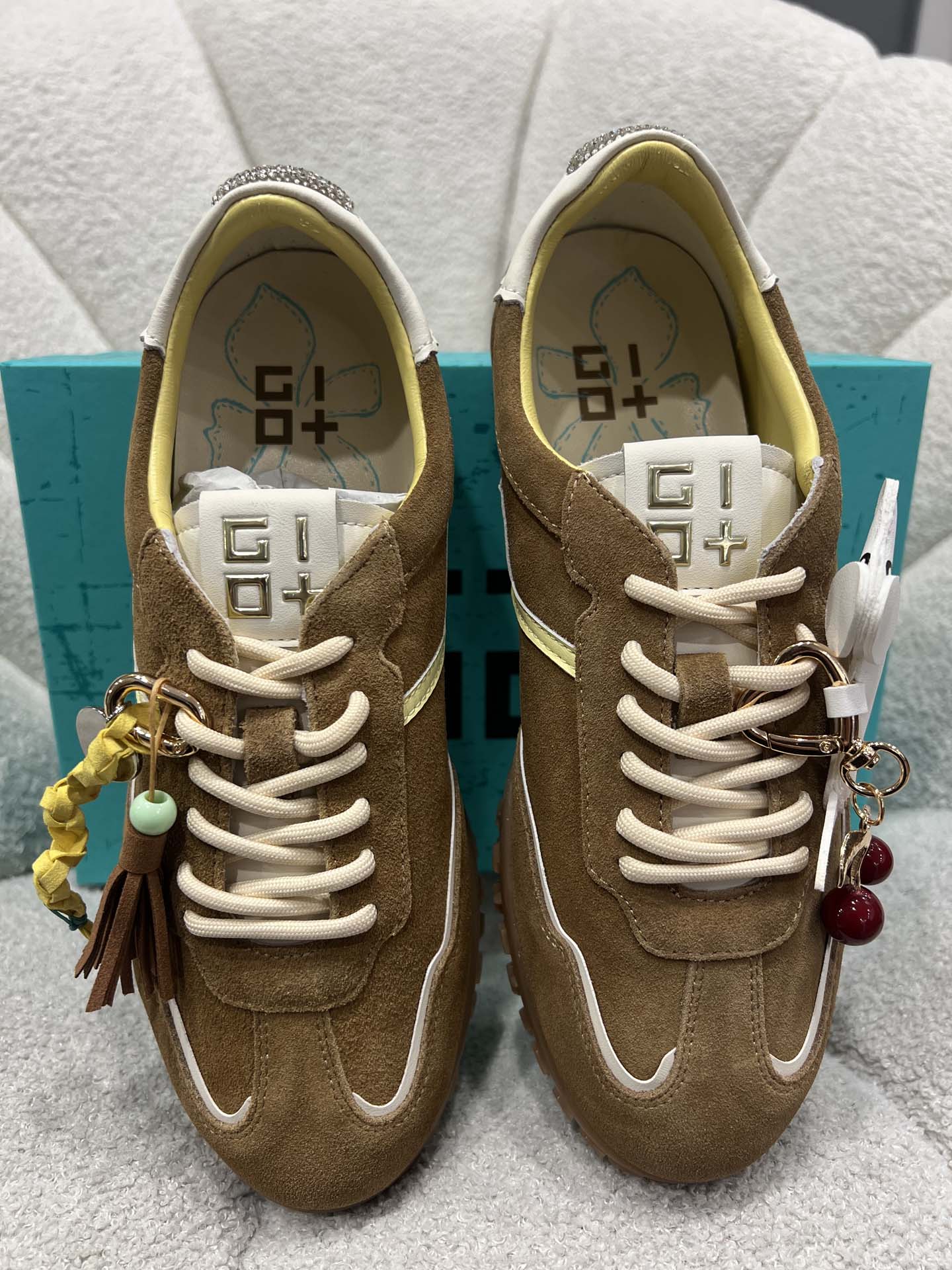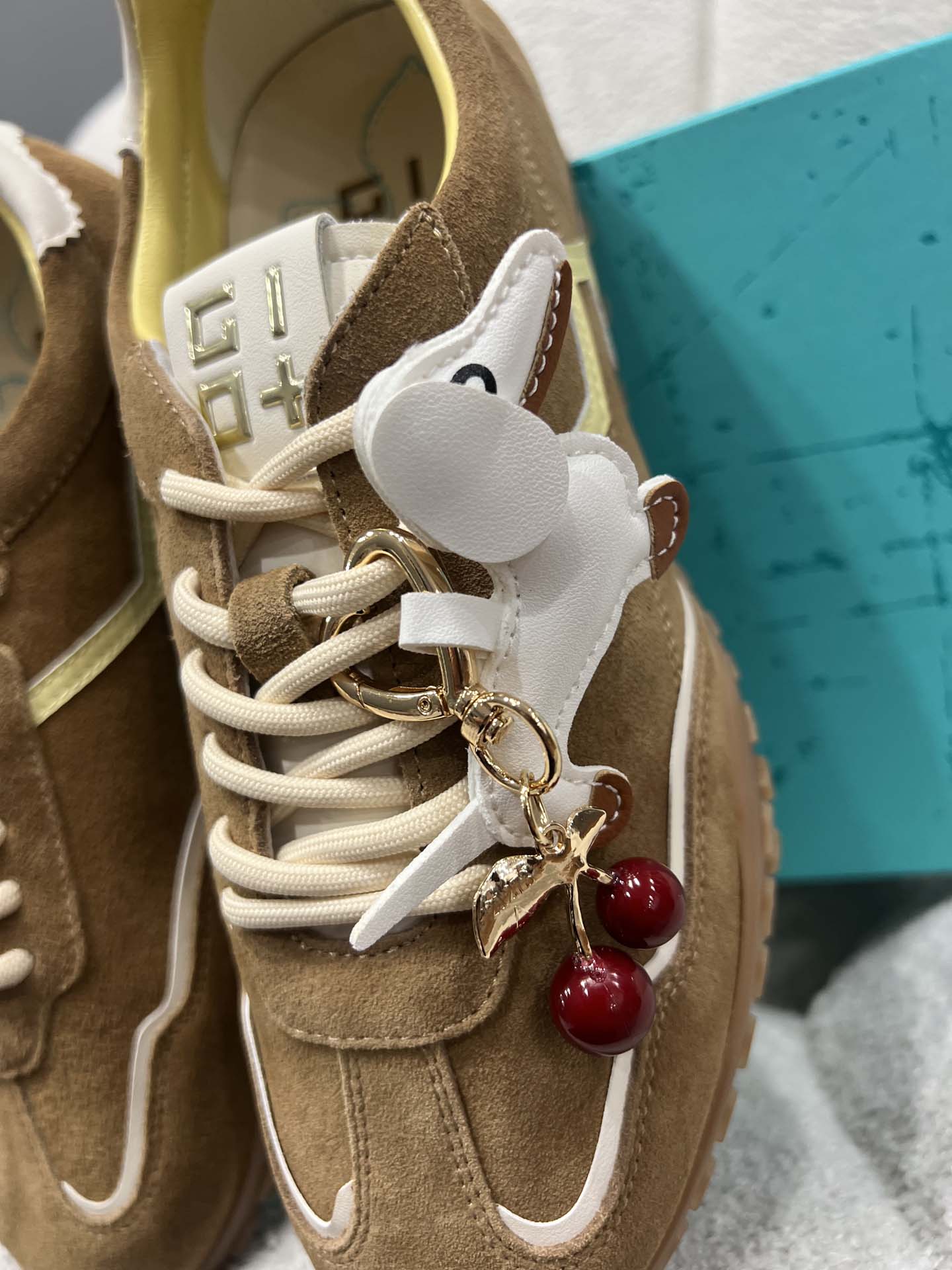 sneaker camoscio biscotto con charms ciliegia bassotto
