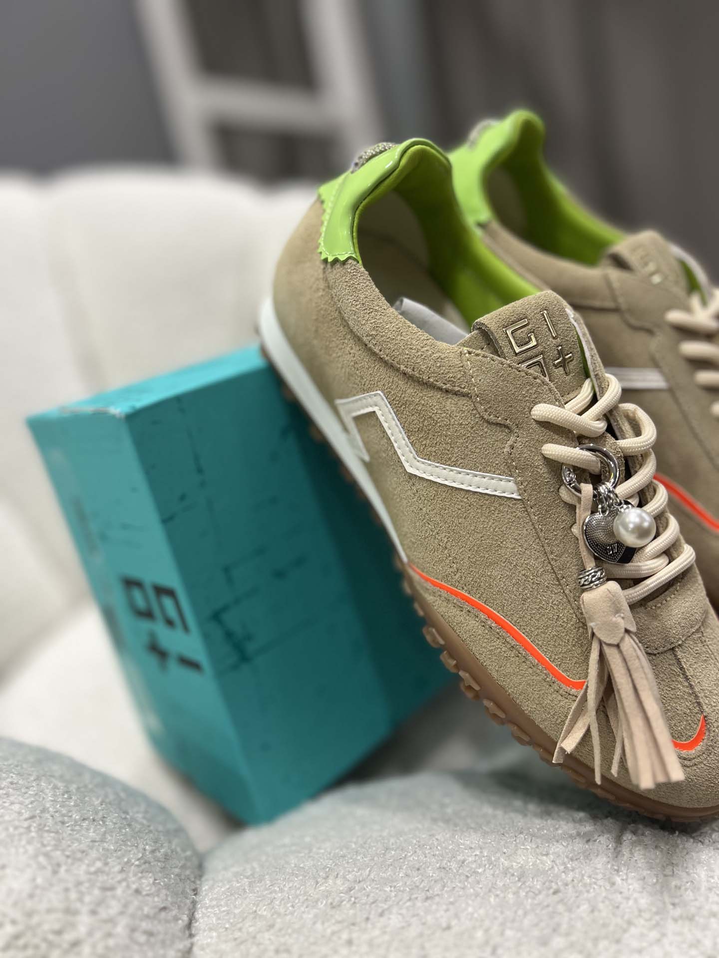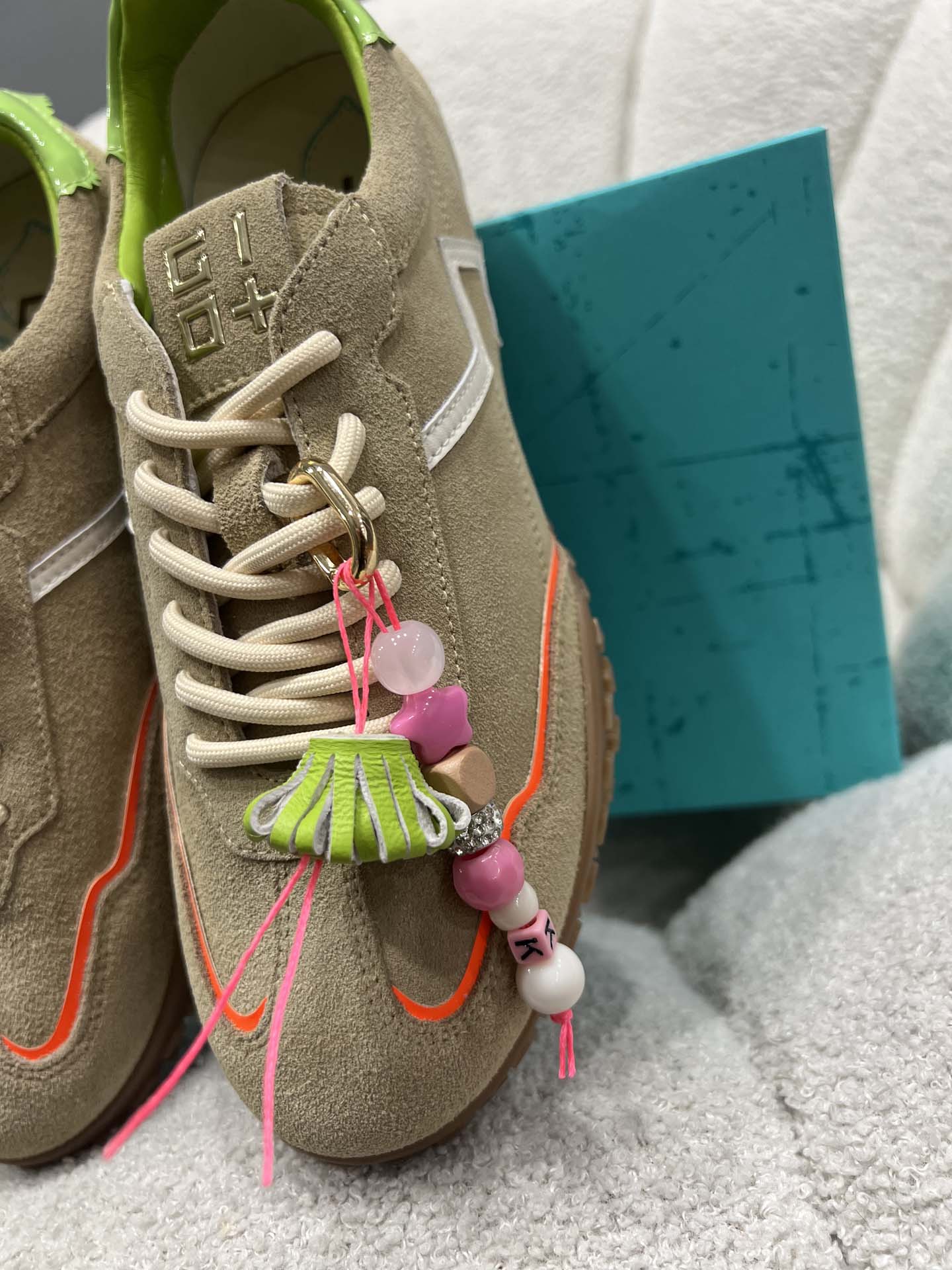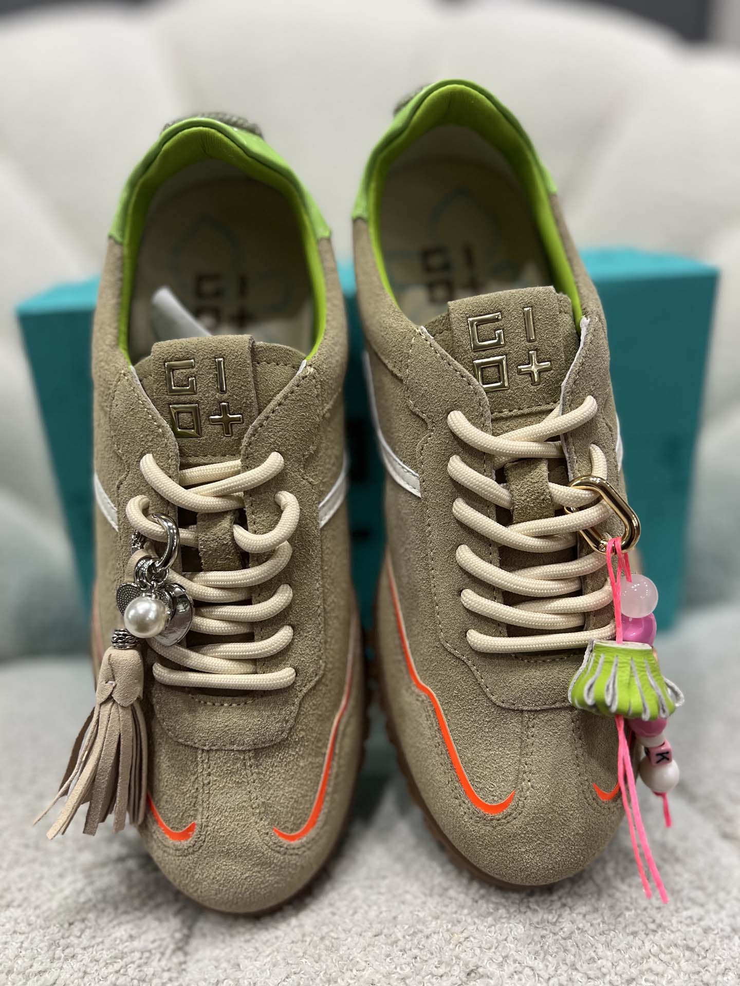 sneakers beig deserto rifinitura aracio e verde con charm
