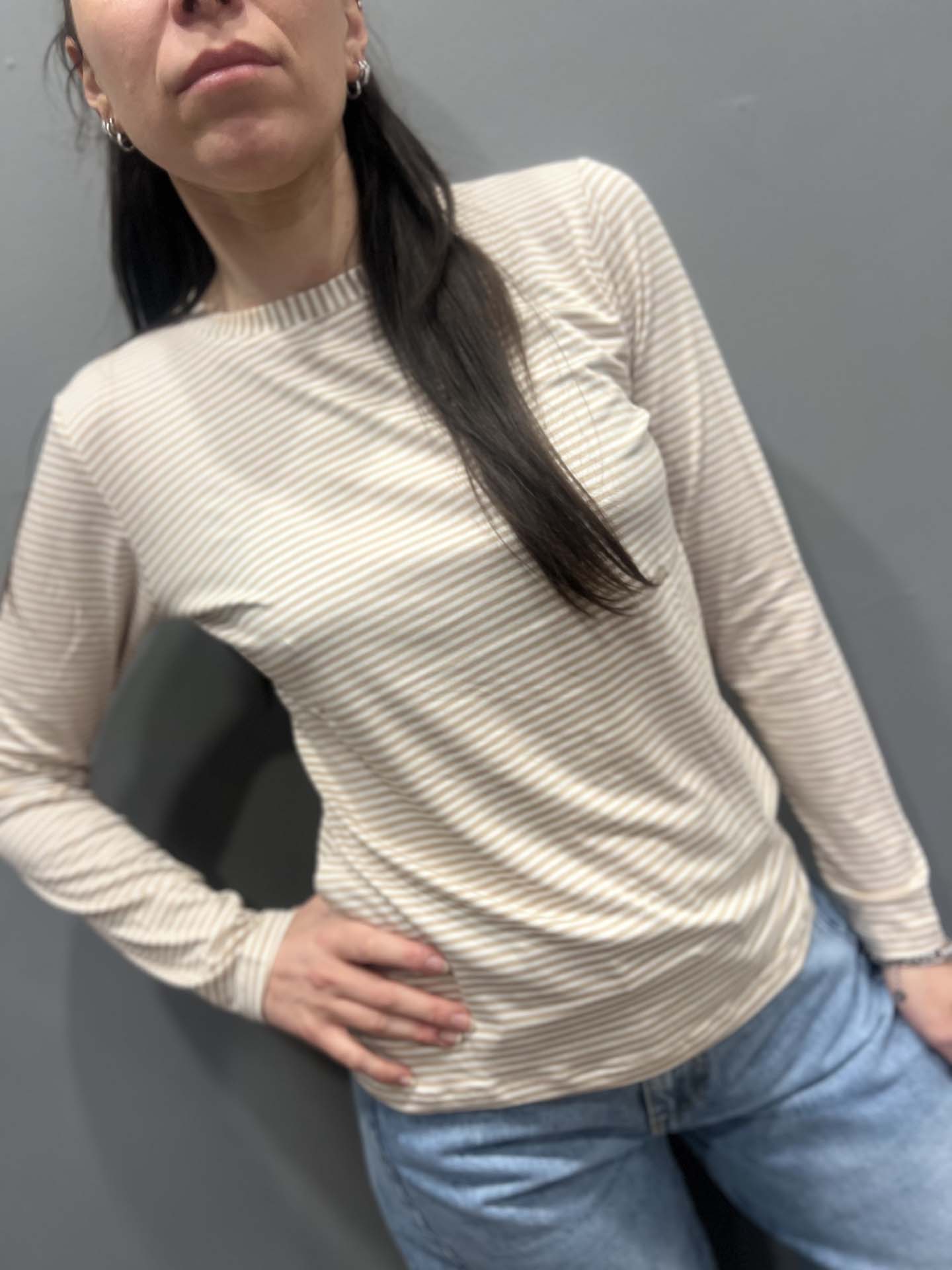 T-Shirt BEIGE E BIANCA GIROCOLLO