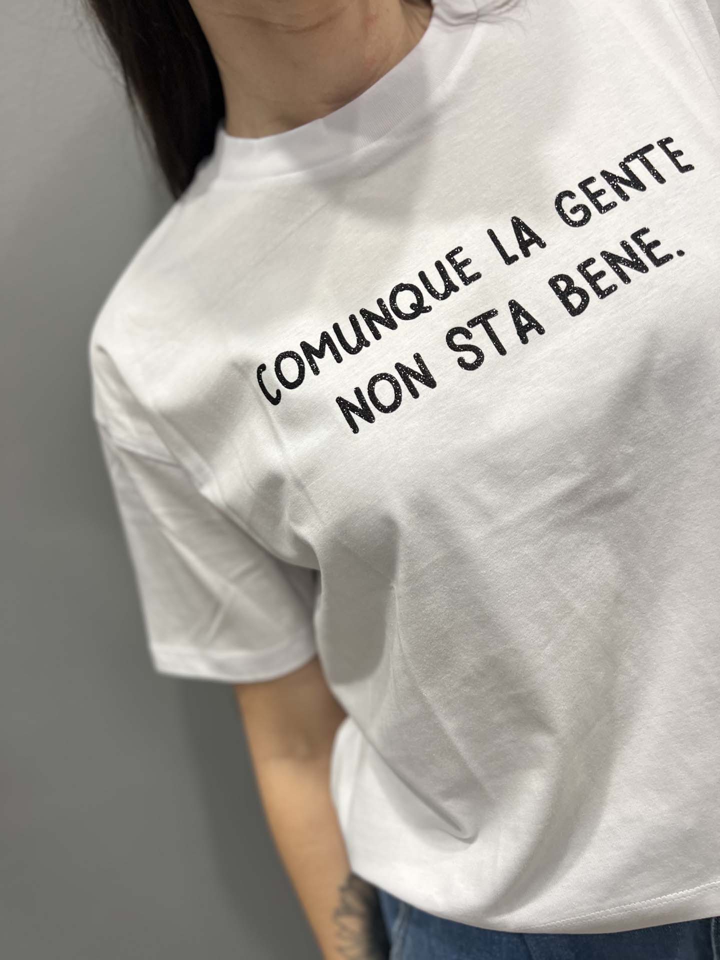 T-Shirt BIANCA GIROCOLLO SCRITTA LA GENTE CMQ NON STA BENE
