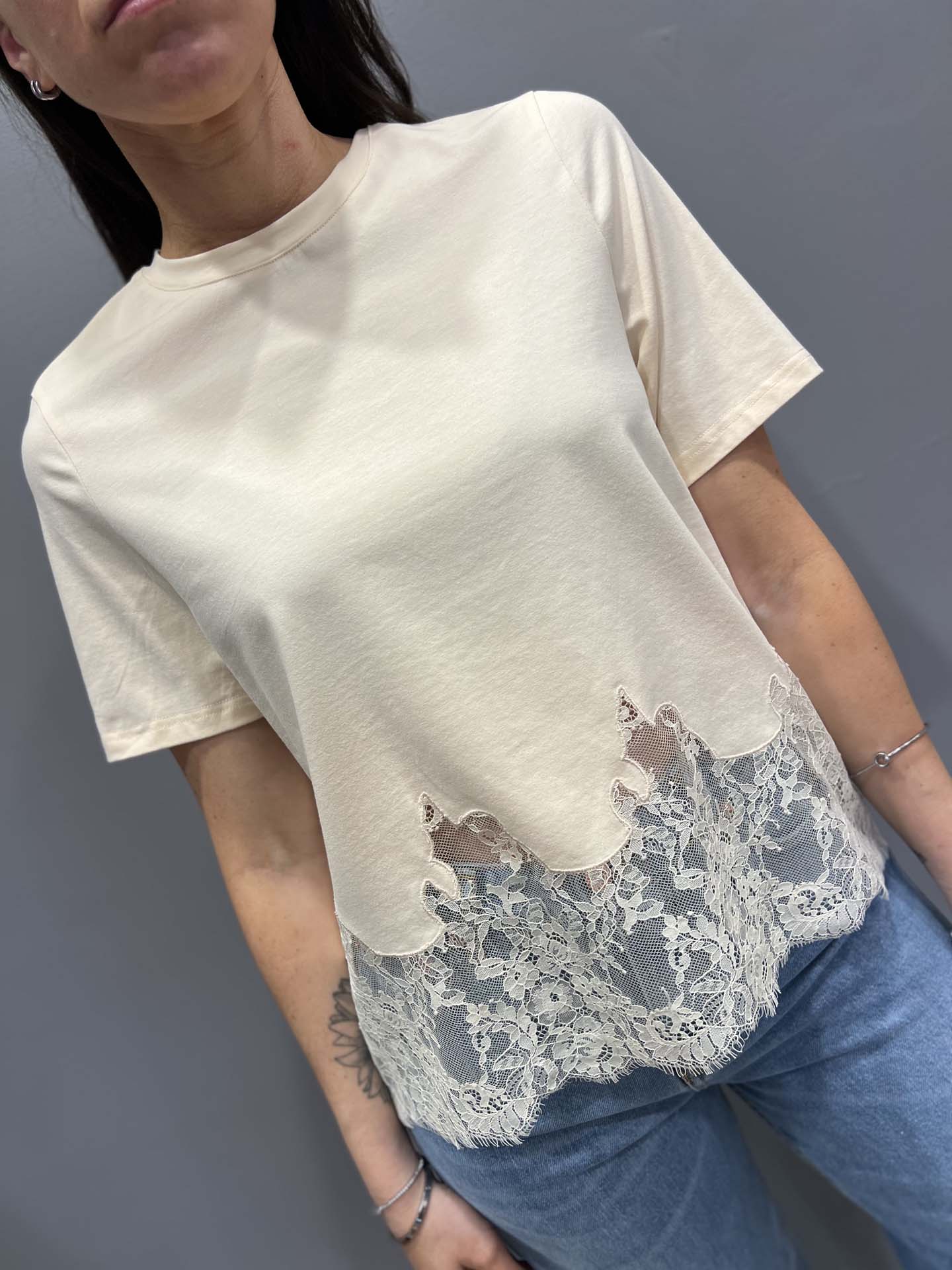 T-Shirt crema con pizzo finale