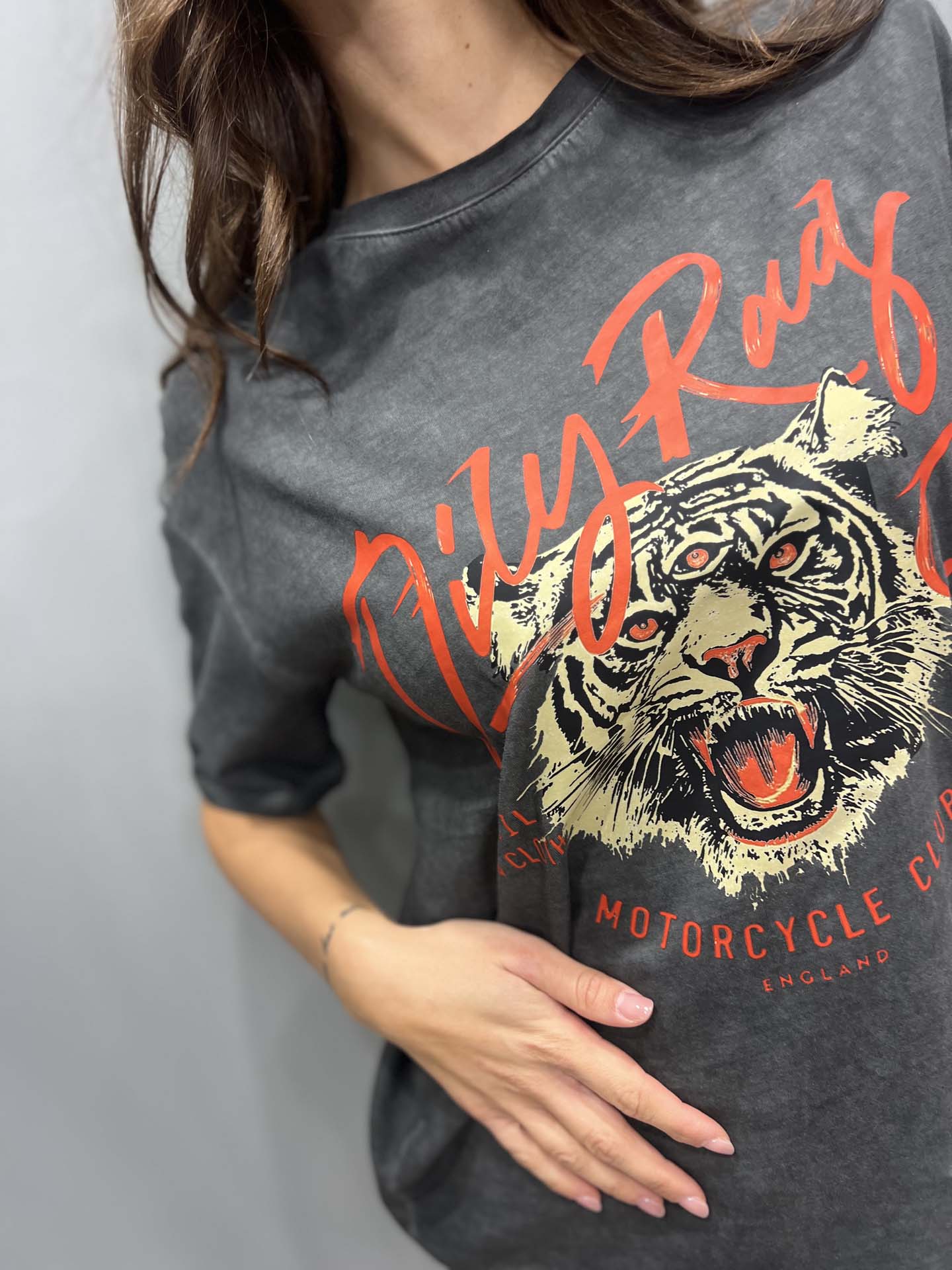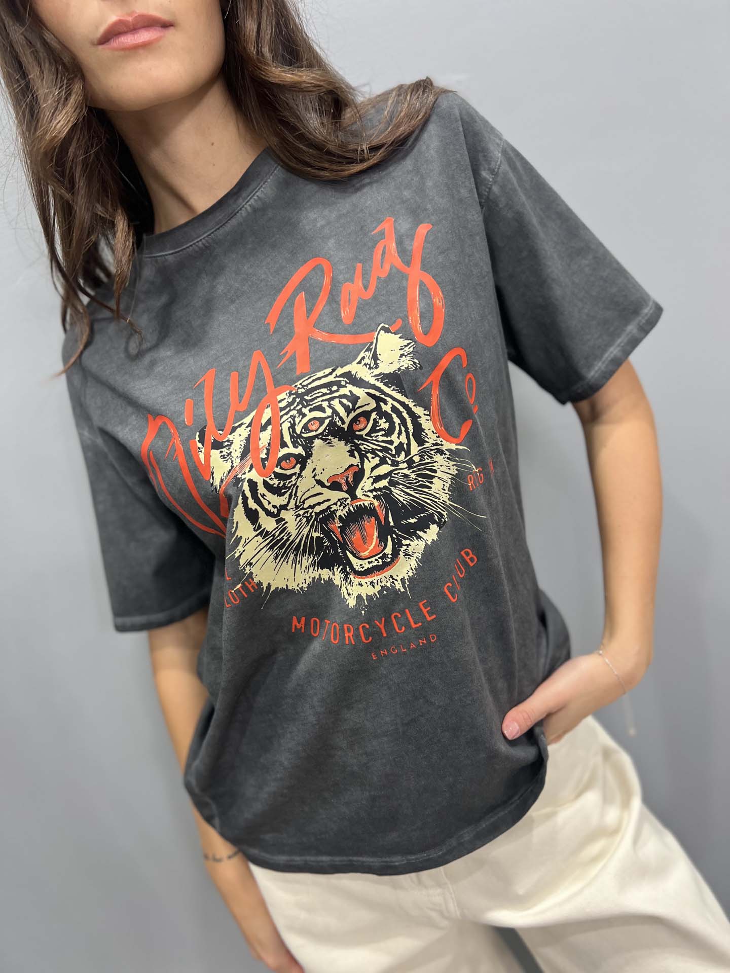T-Shirt grigia DELAVE CON STAMPA TIGRE